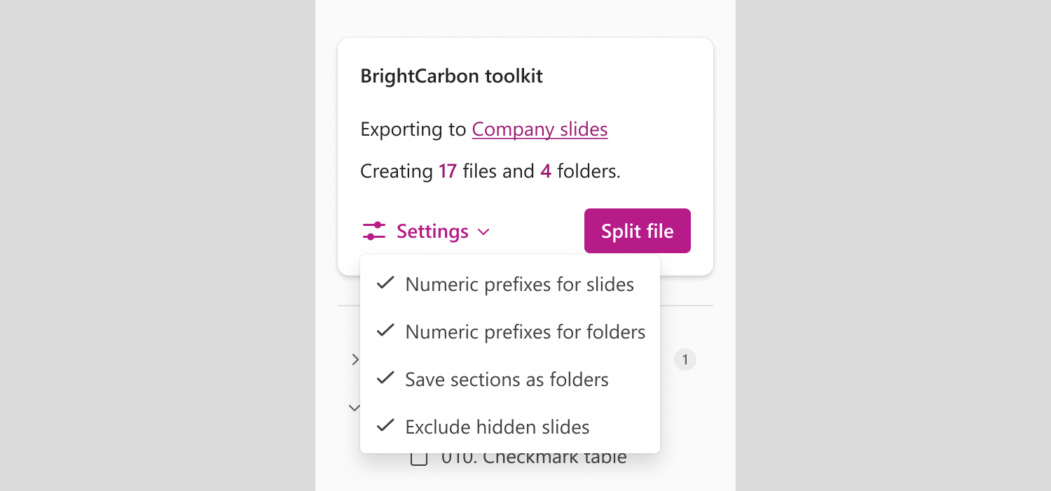 ℹ️Multi-slide presentations are required for this feature. If a file contains only one slide, the Split tool will not run.