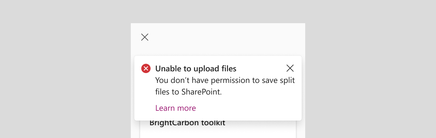 If you see the “Unable to upload files” message, it means you don’t have permission to save split slides to the SharePoint location where the original file is stored.